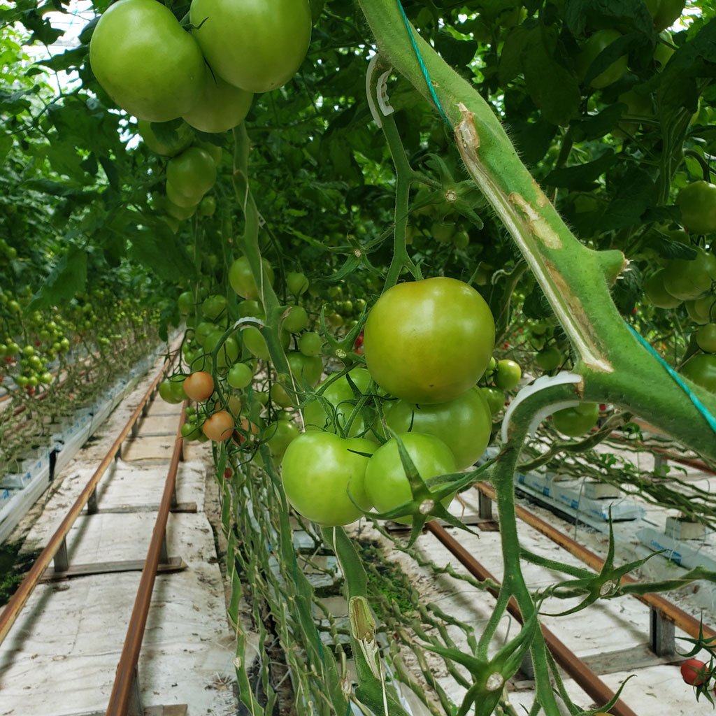 Stem clips are used to secure the twine to the plant stem, providing support as the plant grows. This practice helps prevent stems from bending or breaking under the weight of the developing plant, reducing stress and keeping them stable. Maintaining upright growth also helps maximise space and airflow within the greenhouse.